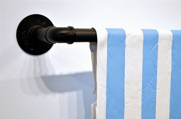 Out to Dry, discarded/mistint house paint and metal bar, 52” x 52” x 36”, 2024